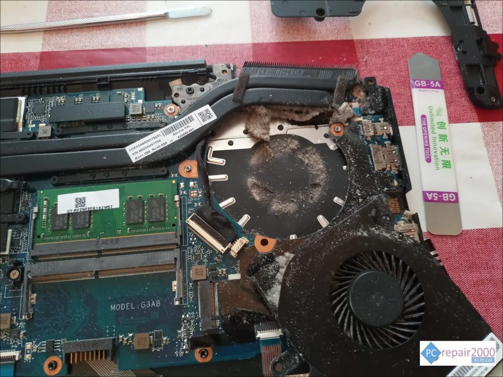 Kiểm tra: Kỹ thuật viên phát hiện bụi dày trong heatsink, keo tản nhiệt khô, quạt quay yếu.
