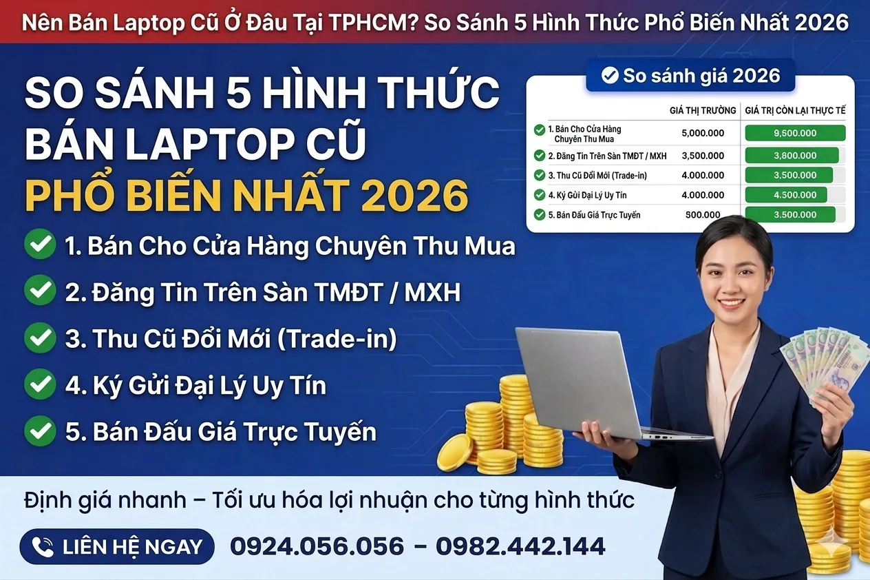 Nên Bán Laptop Cũ Ở Đâu TPHCM? So Sánh 5 Hình Thức Phổ Biến Nhất 2026
