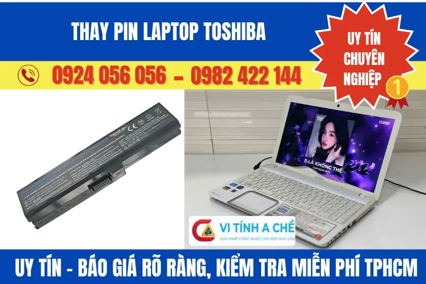Nếu bạn cần kiểm tra và thay pin laptop Toshiba đúng loại pin và đúng kỹ thuật, Vi Tính A Chề – 1284/1 Trường Sa, Phường Tân Sơn Hoà, TP.HCM – 0924 056 056 – 0982 422 144 sẽ hỗ trợ kiểm tra miễn phí và báo giá trước khi thực hiện.