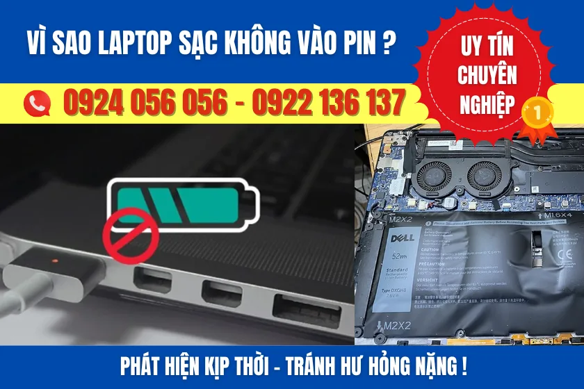 Laptop sạc không vào pin là tình trạng cắm sạc nhưng phần trăm pin không tăng, báo “Plugged in, not charging”, đèn sạc không sáng hoặc sáng sai trạng thái. Đây không phải một lỗi đơn lẻ, mà là kết quả của trục trặc ở nguồn điện – adapter – cổng sạc – pin – mạch sạc – IC nguồn (PMIC) – driver.